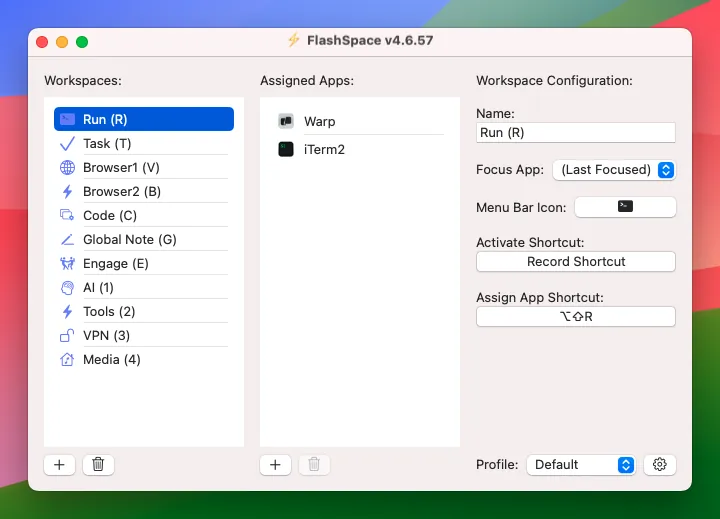This is my configuration. You can see how I set my keyboard shortcuts.